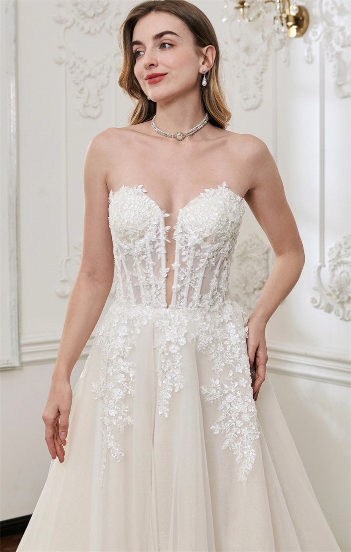 2.Design: Sparkle Strapless Illusion Aline dress with a deep plunge neckline